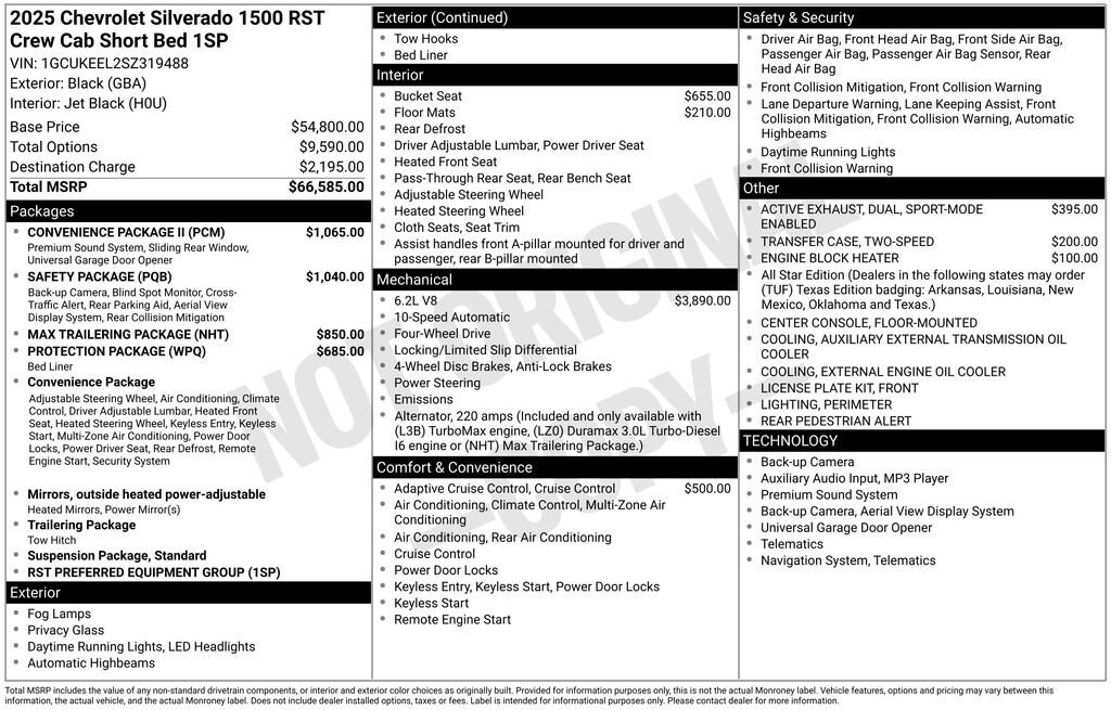 Our 2025 Chevrolet Silverado 1500 LT Trail Boss Crew Cab 4X4 blends an iconic appearance and advanced capability in Black! Powered by a 6.2 Liter V8 supplying 420hp to a 10 Speed Automatic transmission for busy owners with big challenges. Enjoy off-road action with a 2-speed transfer case, hill descent control, and a Z71 suspension with a 2-inch lift. This Four Wheel Drive truck also scores nearly 20mpg on the highway with LED lighting, fog lamps, high-gloss black alloy wheels, an EZ Lift power lock/release tailgate, a trailer hitch, and a 120V outlet.