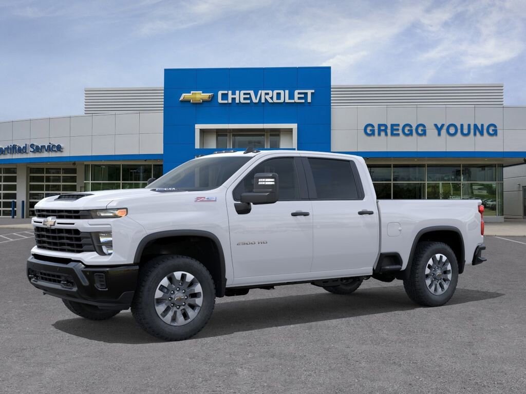 Our 2026 Chevrolet Silverado 2500 Custom Crew Cab 4X4 is ready to rise to your next challenge in Summit White! Powered by a 6.6 Liter V8 generating 401hp for a 10 Speed Allison Automatic transmission tuned for tough jobs. This Four Wheel Drive truck is also easy to handle thanks to a 2-speed transfer case and an auto-locking rear differential. Radiating assertive confidence, our Silverado boasts 20-inch alloy wheels, black recovery hooks, power trailering mirrors, a spray-on bedliner, cargo-bed lighting, a trailer hitch, and a locking tailgate.