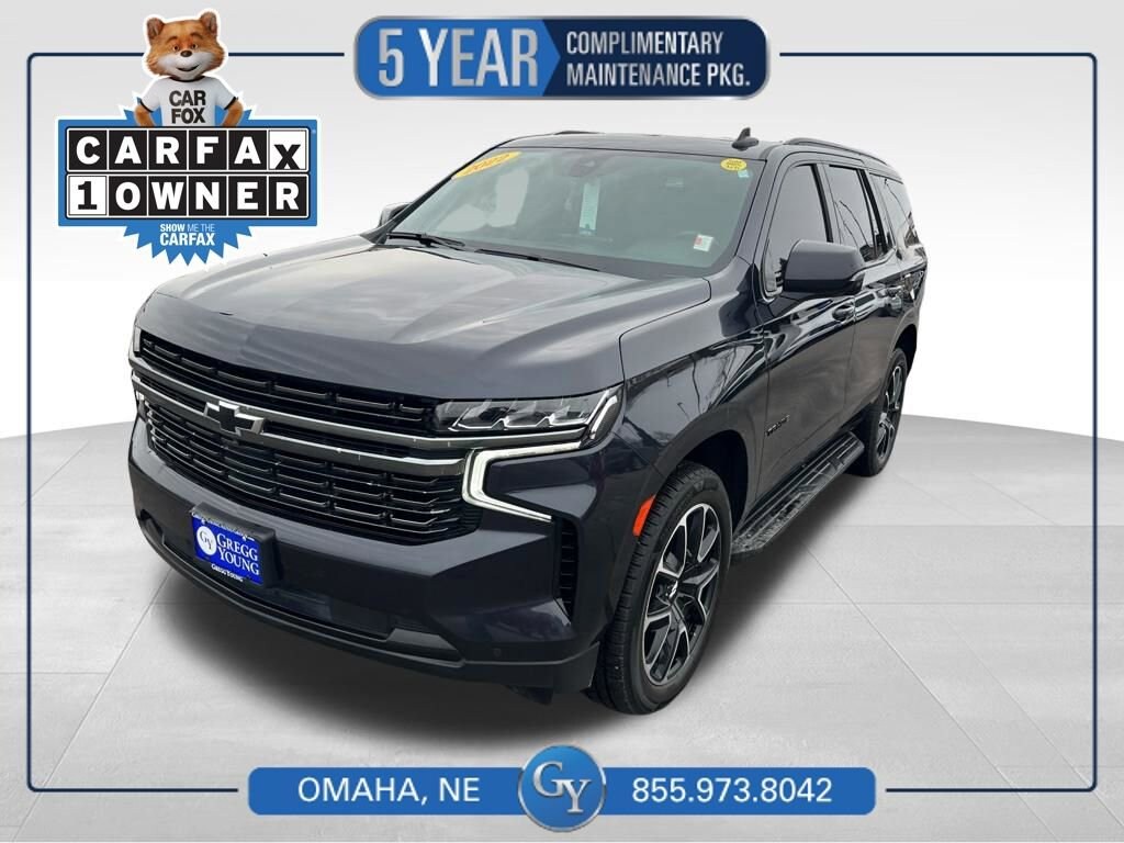 **One Owner**Accident Free**2022**Chevrolet**Tahoe**RST**4WD**Luxury Pack**Heated First and Second Row**Heated Steering Wheel**Panoramic Sunroof**Navigation**Our One Owner, Accident Free 2022 Chevrolet Tahoe RST 4WD with the Luxury Pack adds sporty style to your spirited adventures in Dark Ash Metallic! Powered by a 5.3 Liter V8 offering 355hp paired to a 10 Speed Automatic transmission that puts refined capability within easy reach. This Four Wheel Drive SUV inspires confidence with its responsive handling and achieves nearly 19mpg on the highway. A serious scene-stealer, our Tahoe takes to the road with a bold attitude backed by LED lighting, a black monochrome grille, matching roof rails/assist steps, exclusive Black Ice accents, massive 22-inch black alloy wheels, a hands-free liftgate, and our package for heated power-folding mirrors.More exclusive details await in our RST cabin, including a panoramic sunroof, Jet Black leather heated power front seats with red stitching that complement our package's heated second and power third rows and a heated leather power steering wheel. Our Tahoe takes connectivity to the next level with a 10.2-inch touchscreen, a 12-inch driver display, navigation, wireless Android Auto®/Apple CarPlay®, WiFi compatibility, wireless charging, Bluetooth®, and Bose audio.Chevrolet supports your safety and security with intelligent technology such as automatic emergency braking, lane-keeping assistance, forward-collision warning, parking sensors, and our package for HD surround vision, a blind-spot alert, lane-change alert, and rear cross-traffic alert. With all that and more, our Tahoe RST is impossible to ignore! Save this Page and Call for Availability. We Know You Will Enjoy Your Gregg Young Chevrolet Omaha Test Drive Towards Ownership! We offer PRE-APPROVAL programs so call (402) 572-8080 to get started today! At Gregg Young Chevrolet... We'll Go The Extra Mile For You. We have an app for that! Download the Gregg Young Chevrolet application directly to your iPhone or Android.