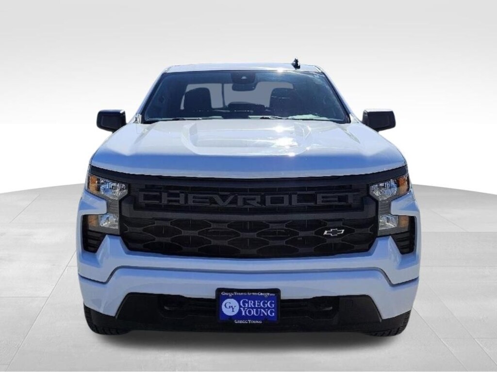 Climb inside our Custom cabin that's well-equipped for busy days with supportive cloth seats, 10-way power for the driver, a tilt-adjustable steering wheel, single-zone climate control, cruise control, 12V/120V power outlets, keyless access/ignition, and remote start. A 7-inch touchscreen, WiFi compatibility, Android Auto®, Apple CarPlay®, Bluetooth®, and a six-speaker sound system are onboard for quick connections and your favorite soundtrack. Added convenience comes with our Silverado's smart storage solutions.