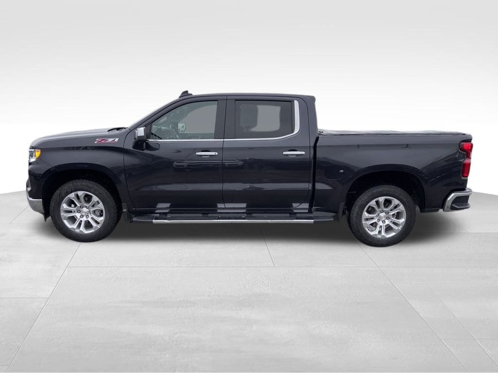 Our One Owner, Accident Free 2024 Chevrolet Silverado 1500 LTZ Crew Cab 4X4 is built with bold strength backed by a commanding Dark Ash Metallic design! Powered by a 5.3 Liter V8 supplying 355hp to a 10 Speed Automatic transmission tuned for tough challenges. A high-capacity suspension helps you tow and haul heavy loads, and this Four Wheel Drive truck scores nearly 20mpg on the highway. Owners can feel pride inside when they look at our Silverado, which is well-equipped with LED fog lamps, a power up/down tailgate, perimeter lighting, 20-inch alloy wheels, a trailer hitch, heated power-folding mirrors, running boards, a tonneau cover, and a handy 120V outlet.