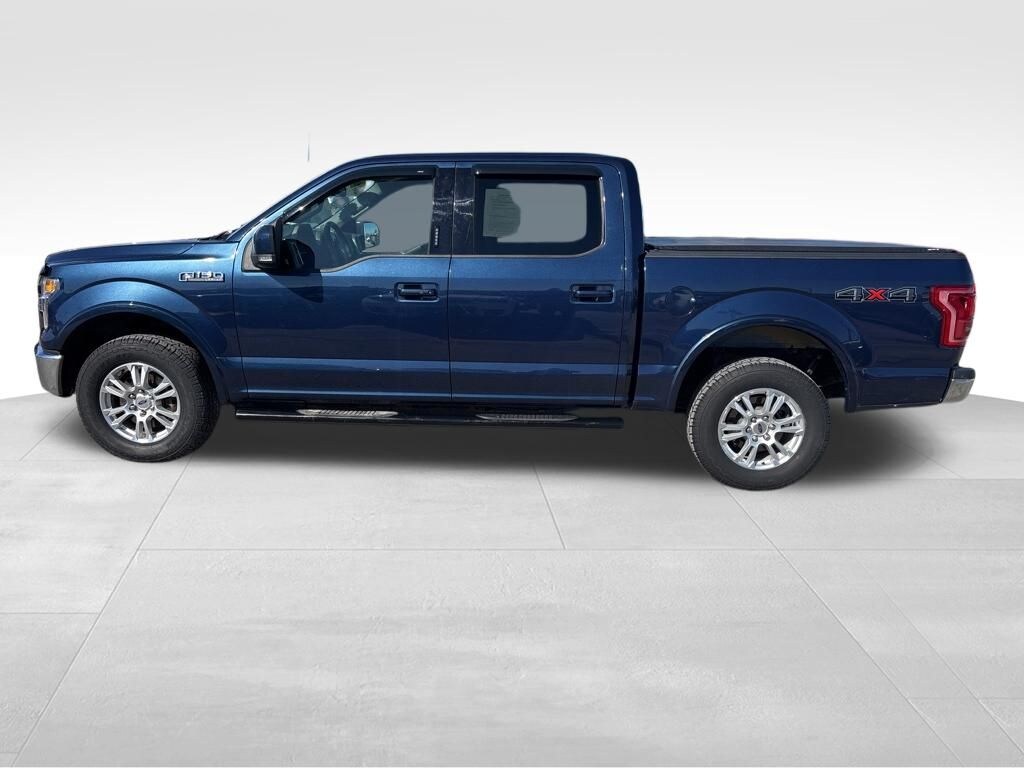 Built with power, our Accident Free 2016 Ford F-150 Lariat SuperCrew 4X4 is handsome and comfortable in Blue Jeans! Motivated by a 5.0 Liter V8 that offers 385hp tethered to a 6 Speed Automatic transmission that you can tune to meet your needs with Sport and Tow/Haul modes. This Four Wheel Drive truck is a force to be reckoned with on or off the road, and it scores nearly 21mpg on the highway with rugged good looks. Bold F-150 design details include a mighty chrome grille, premium alloy wheels, LED box lighting, fog lamps, chrome bumpers, and heated power-folding mirrors.