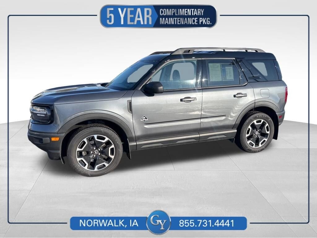 Step up to our Accident Free 2022 Ford Bronco Sport Outer Banks 4X4, with the Tech Pack and a bold Carbonized Gray Metallic design, and let your adventurous spirit run free! Powered by a TurboCharged 1.5 Liter EcoBoost 3 Cylinder supplying 181hp connected to an 8 Speed Automatic transmission that's built for blazing trails. Further first-class functionality comes with terrain management and an off-road suspension, and our Four Wheel Drive SUV achieves nearly 28mpg on the highway. Fantastically fierce-looking, our Bronco Sport features LED lighting, hatch-mounted flood lamps, flip-up rear glass, premium alloy wheels, and a Shadow Black roof for a bold two-tone effect.