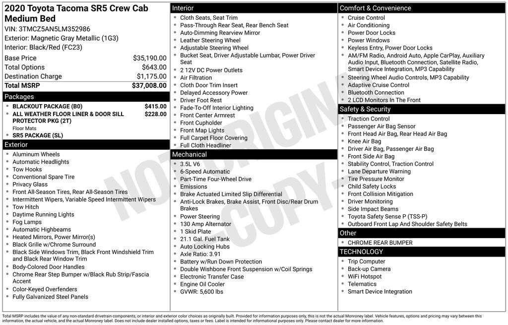 A comfortable ride in a go-anywhere vehicle! With less than 30,000 miles on the odometer, this vehicle provides excellent value as a pre-owned model. All of the following features are included: air conditioning, power door mirrors, and power windows. A 3.5 liter V-6 engine pairs with a sophisticated 6 speed automatic transmission, and for added security, dynamic Stability Control supplements the drivetrain. Four wheel drive allows you to go places you've only imagined.